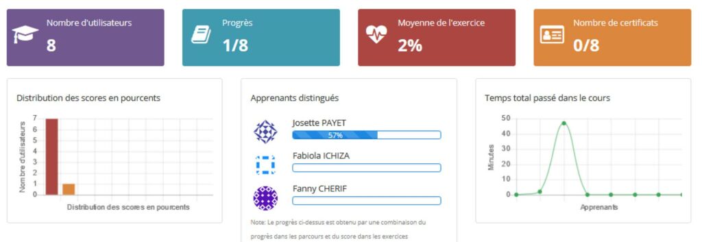 - Visualiser leur progression et d’interagir avec les autres apprenants