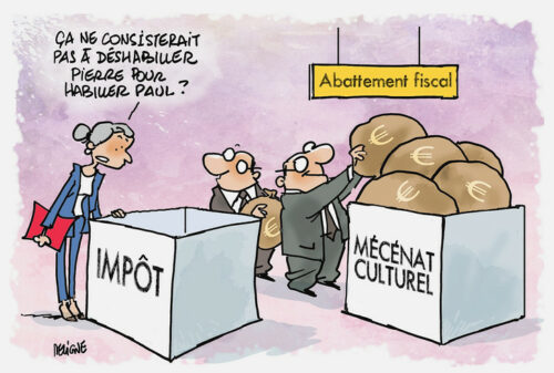 L’État encourage le mécénat au sens originel du terme – à savoir le soutien aux arts et à la culture – à travers des dispositifs spécifiques: ainsi, les entreprises peuvent déduire intégralement de leur base fiscale (et non de leur impôt) les coûts d’acquisition d’œuvres originales d’artistes vivants ou d’instruments de musique à condition qu’ils soient exposés ou mis à disposition. D’autre part, le montant de la réduction fiscale est porté à 90% pour le concours à l’achat par l’État de biens culturels ayant un caractère de trésor national. Enfin, l’achat de biens culturels par les entreprises pour leur propre compte ouvre droit à une réduction d’impôt de 40 % de la somme consacrée à cette acquisition.